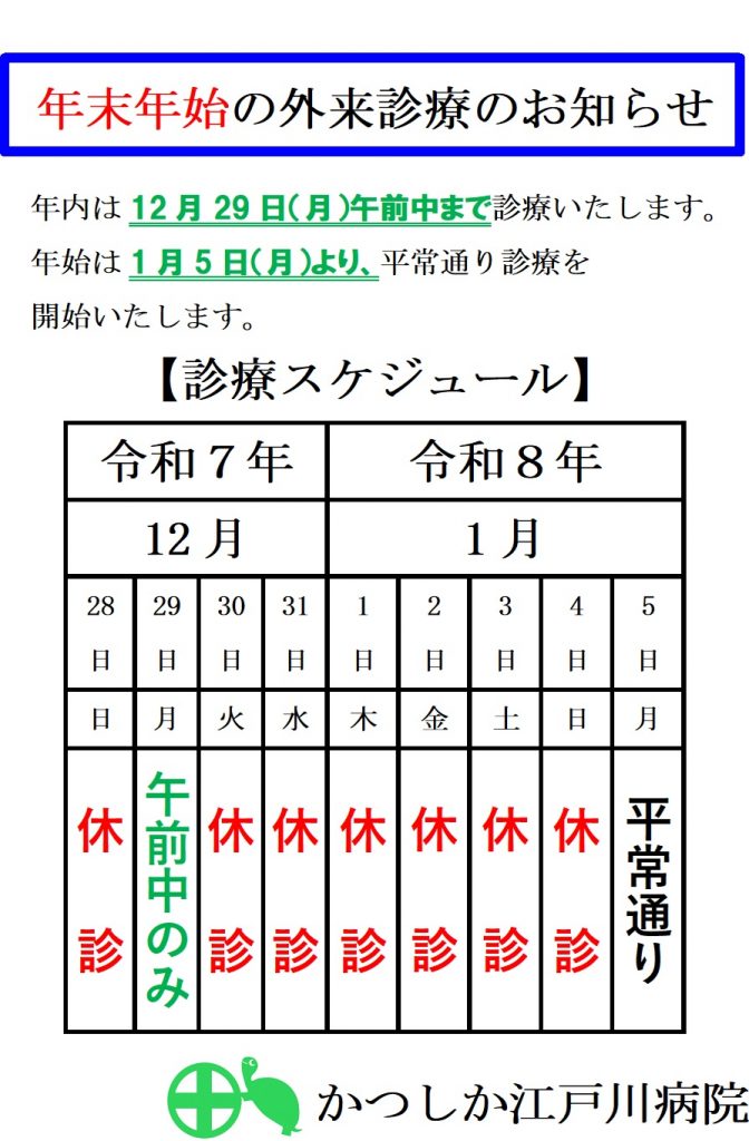 年末年始の外来診療のお知らせ