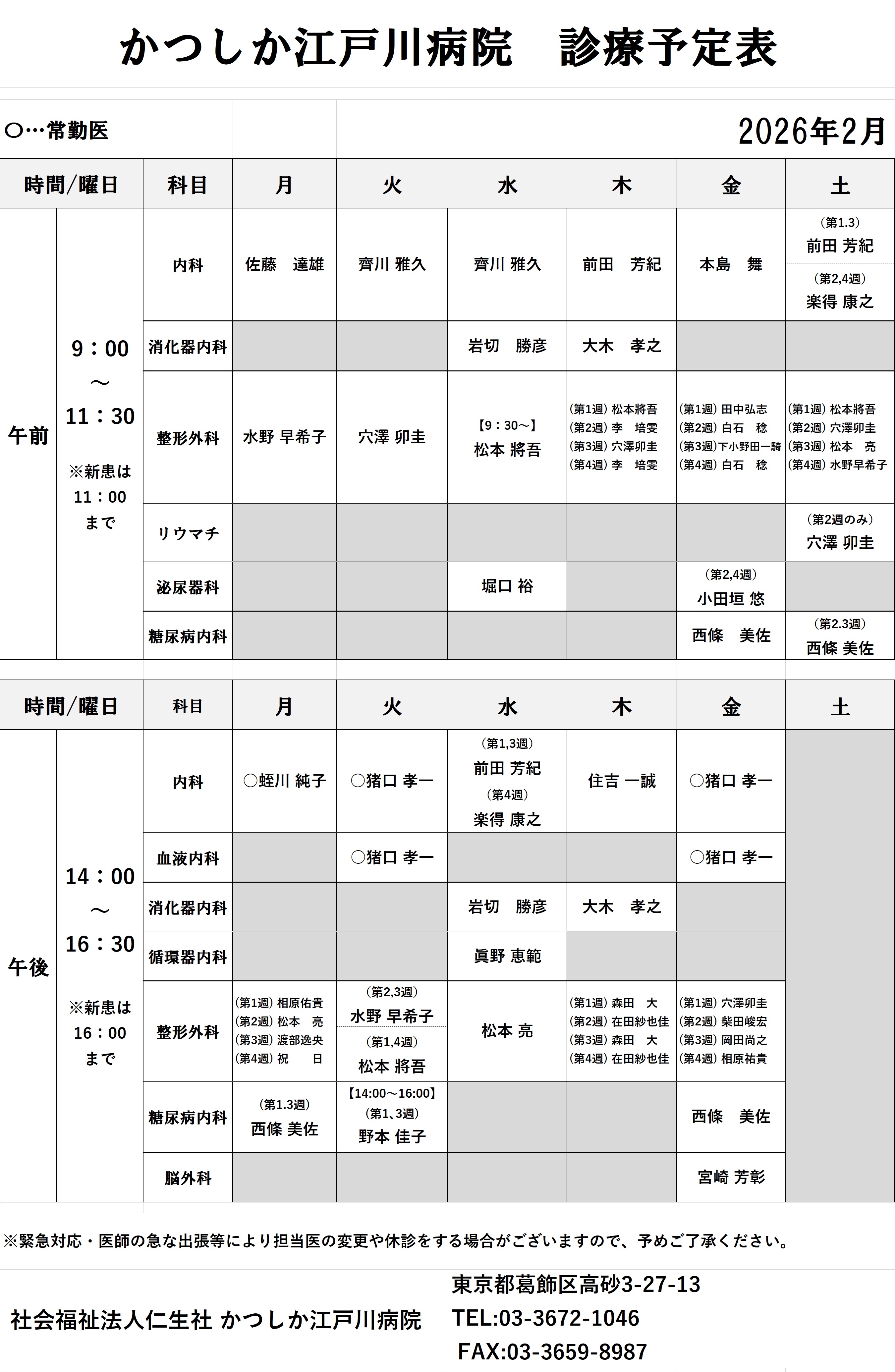 かつしか江戸川病院(旧高砂協立病院)|内科、整形外科、循環器内科、消化器内科、血液内科、糖尿病内科、泌尿器科、脳神経外科、リウマチ科、放射線科、リハビリテーション科|東京都葛飾区高砂の病院です。|京成高砂駅から6 分。お気軽にご相談ください。
